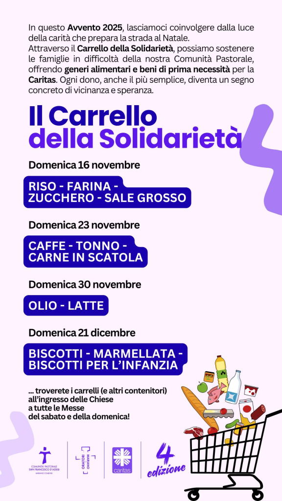 Gli Oratori di Mariano organizzano una raccolta di generi alimentari a sostegno della Caritas della nostra Comunità.