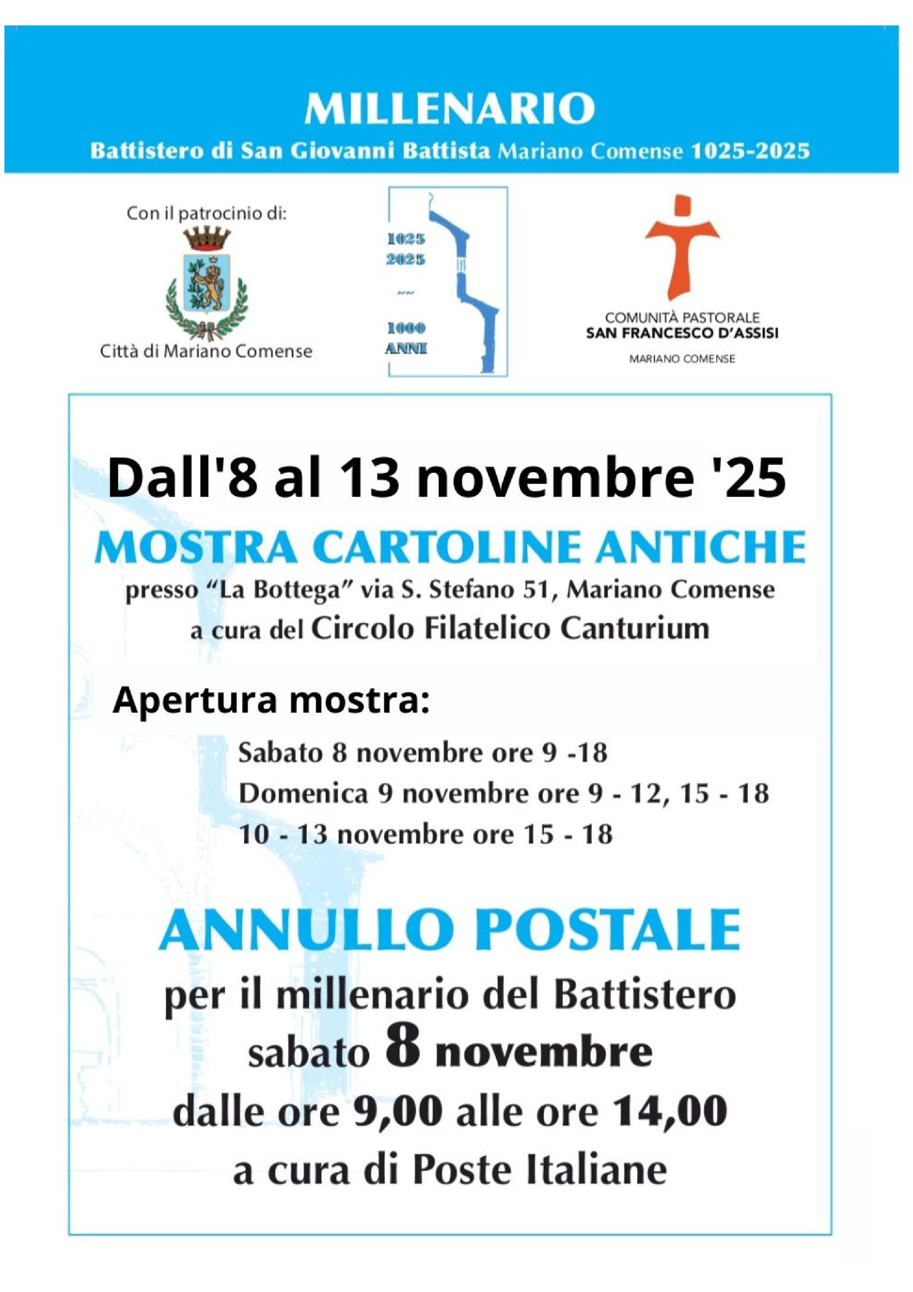 Annullo postale per il millenario del Battistero nel giorno 8 novembre dalle ore 9.00 alle ore 14.00 a cura di Poste Italiane